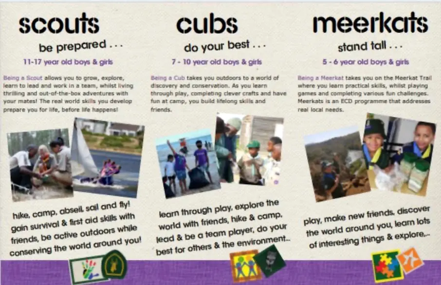 We are part of SCOUTS SOUTH AFRICA 1st Sao Jorge Troop (Primrose Scouts) WHAT WE DO We are part of the World Organisation of Scouting Movement in S.A, and are actively recruiting new Scouts✨😃 We are a group of trained volunteers who are committed to ensuring the development of young minds through play, interaction, song, dance, culture, community, and the outdoors, In line with the mission set out for youth, established by Baden Powell. Kids participate in Friday night activities and work towards both interest and advancement badges, linked to programmes that encourage their development through the above (NOT school classroom activities) Address 15 Walnut AvenuePrimroseGermiston1401(Inside Luso Africa Sports grounds) Kids will also participate in camps, hikes, cooking & swimming competitions, community service hours, fundraising projects, workshops, joint programmes within the district and so much more, as well as District, Regional and National events. For only R150 per child, per